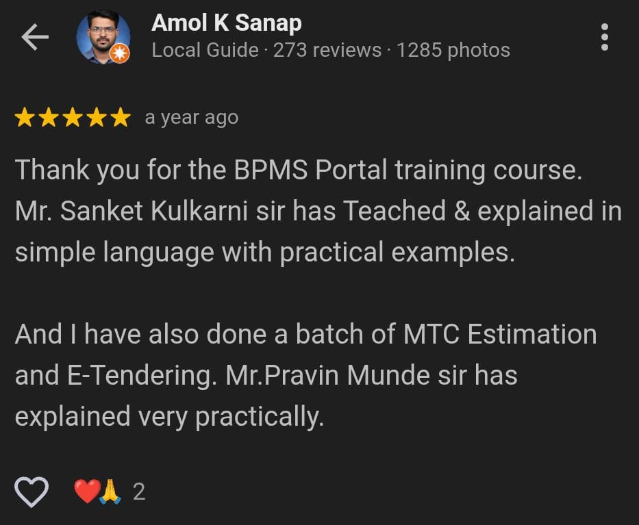 рдЧреЗрд▓реНрдпрд╛ рдЕрдиреЗрдХ рд╡рд░реНрд╖рд╛рдВрдкрд╛рд╕реВрди рдореА BPMS рдХреНрд╖реЗрддреНрд░рд╛рдд рдХрд╛рдо рдХрд░рдд рдЖрд╣реЗ рдЖрдгрд┐ рдпрд╛ рд╕рд┐рд╕реНрдЯрд┐рдордордзреАрд▓ рдкреНрд░рддреНрдпреЗрдХ рдЯрдкреНрдкрд╛ рдкреНрд░рддреНрдпрдХреНрд╖ рдЕрдиреБрднрд╡рд╛рддреВрди рд╢рд┐рдХрд▓реЗрд▓рд╛ рдЖрд╣реЗ. рдпрд╛ рдкреНрд░рд╡рд╛рд╕рд╛рдд рдореА рд╢реЗрдХрдбреЛ рдорд░рд╛рдареА рдпреБрд╡рдХ-рдпреБрд╡рддреАрдВрдирд╛ Plan Passing, Drawing Upload, Document Submission рдЖрдгрд┐ рд╕рдВрдкреВрд░реНрдг BPMS workflow рд╕реЛрдкреНрдпрд╛ рднрд╛рд╖реЗрдд рд╕рдордЬрд╛рд╡реВрди рджрд┐рд▓рдВ рдЖрд╣реЗ.